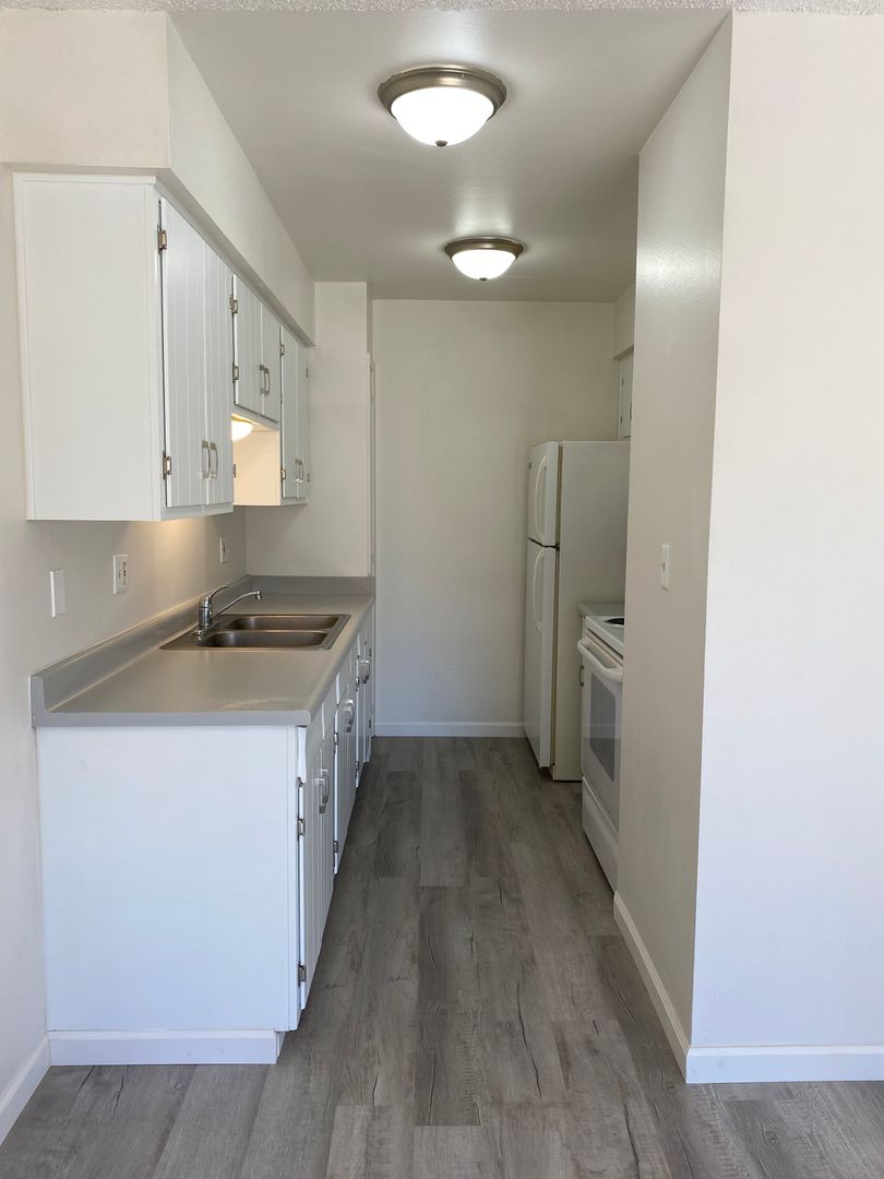 This is a pet friendly one bedroom, upstairs apartment. This unit has been completely repainted with new vinyl plank flooring throughout. The bathroom has a brand new shower/tub surround, toilet and vanity. The bedroom features a large walk in closet. This apartment community has nice landscaping with a gazebo and picnic table, next to the community BBQ's for all residents to enjoy and the exterior has been completely repainted. This apartment is pet friendly and may accept 1 pet with approval by Management and additional non-refundable pet fee of $250 and pet rent in the amount of $25 per pet per month. There is an on-site coin-operated laundry room. Unassigned covered parking available on a first-come first-serve basis. The owners are responsible for water, sewer and on-site trash. Commander Heights shares privileges to the pool across the street, located at the Sunset apartments. This property has surveillance cameras that are not monitored 24/7. Residents are required to obtain renters insurance on or before lease start date. Lease term: 12 months. Offered through Bumpus Properties & Property Management, LLC. Please call or email the office at 928-706-8480 or taylorm@bumpusproperties.com to schedule a showing and inquire about applying! Office located at 2021 Commander Drive Apt B, Lake Havasu City, AZ 86403.