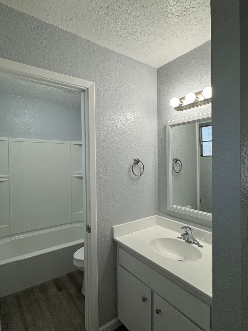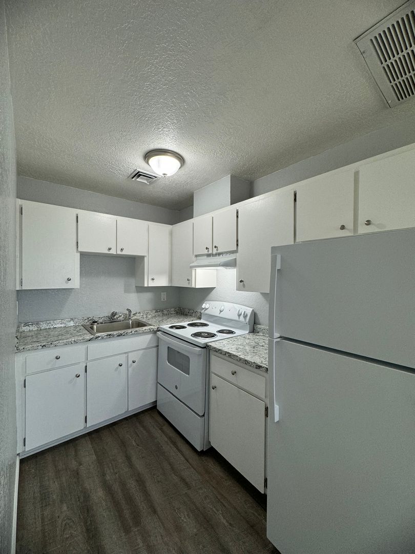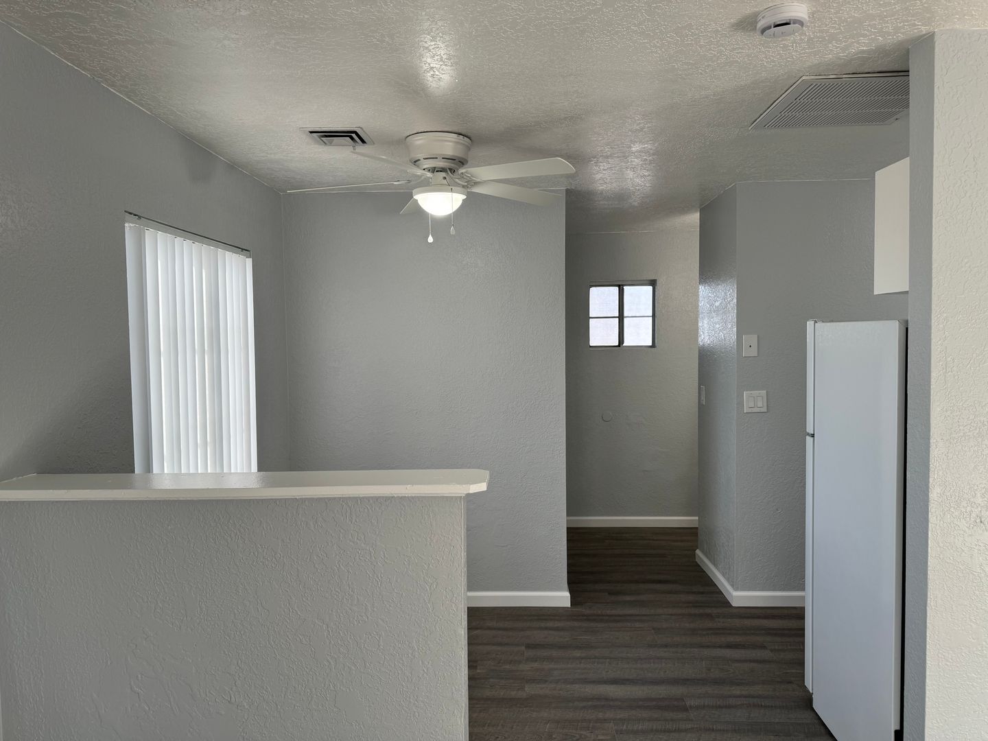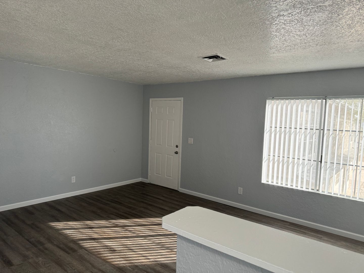 This is a completely refreshed second level studio apartment. Fresh paint and flooring throughout the unit. The kitchen has brand new appliances, countertops and kitchen sink. Large walk-in closet. Bathroom has a shower/tub surround and new toilet. This apartment is pet friendly and may accept 1 pet with approval by Management and additional non-refundable pet fee of $250 and pet rent of $25 per month. Located near the community pool. This unit has 1 assigned parking space. Complex has recently had the landscaping redone for all residents to enjoy and the exterior has been completely repainted. There is an on-site coin-operated laundry room. The owners are responsible for water, sewer and on-site trash. Sunset and Commander Heights residents share privileges to the community pool located at this complex. This property has surveillance cameras that are not monitored 24/7.